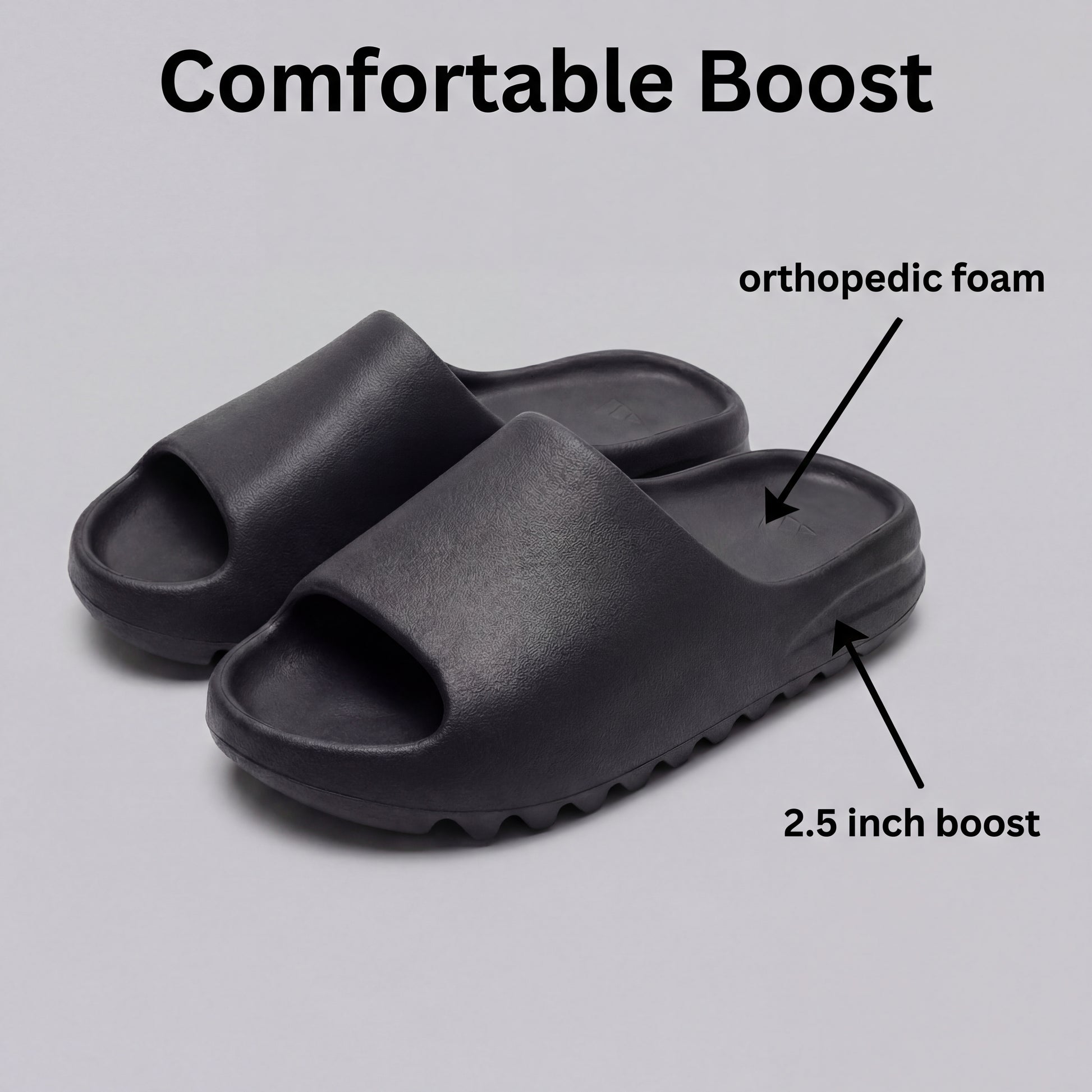 MaxSlides look and feel just like your everyday slides—with one key difference: they add 2.5 inches to your height. No bulky designs. No giveaways. Just a subtle height boost that fits right in, so no one notices… except you.